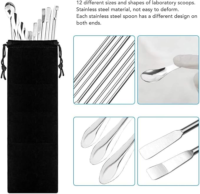 Bu 12 parçalı Paslanmaz Çelik Laboratuvar Spatula Seti, hassas kepçeleme ve ölçüm için çift uçlu mikro spatulalar ve uzun numune alma kaşıkları içerir. Deneyler, laboratuvar çalışmaları ve reaktif kullanımı için ideal olan bu set, öğrenciler ve profesyoneller için çok yönlü bir kittir.