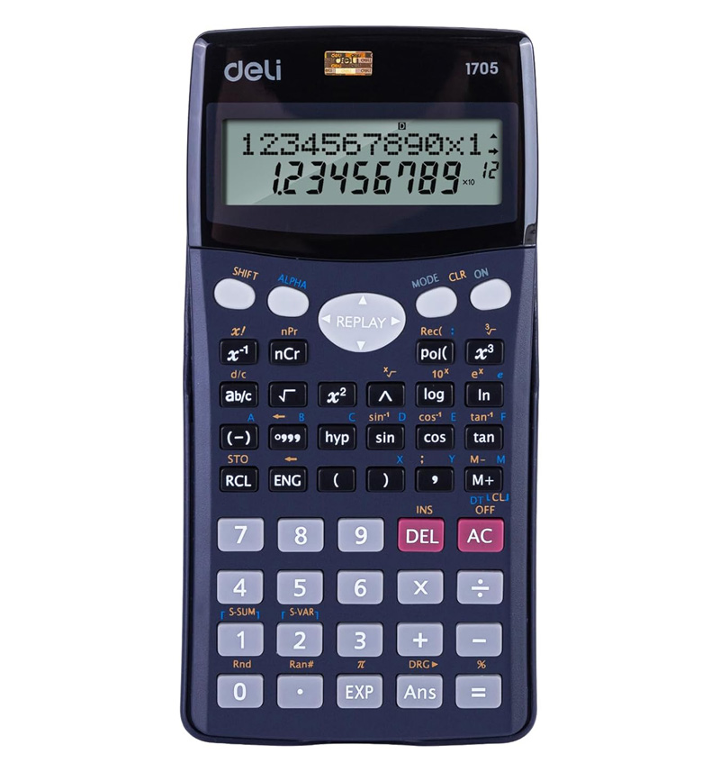 Deli E1710 Bilimsel Hesap Makinesi, 240 fonksiyona, 10+2 haneli ekrana ve şık gri bir tasarıma sahiptir. Öğrenciler ve profesyoneller için ideal olan bu hesap makinesi, çok çeşitli matematiksel, cebirsel, geometrik ve istatistiksel hesaplamaları destekleyerek okul, üniversite ve ofis kullanımı için mükemmeldir.