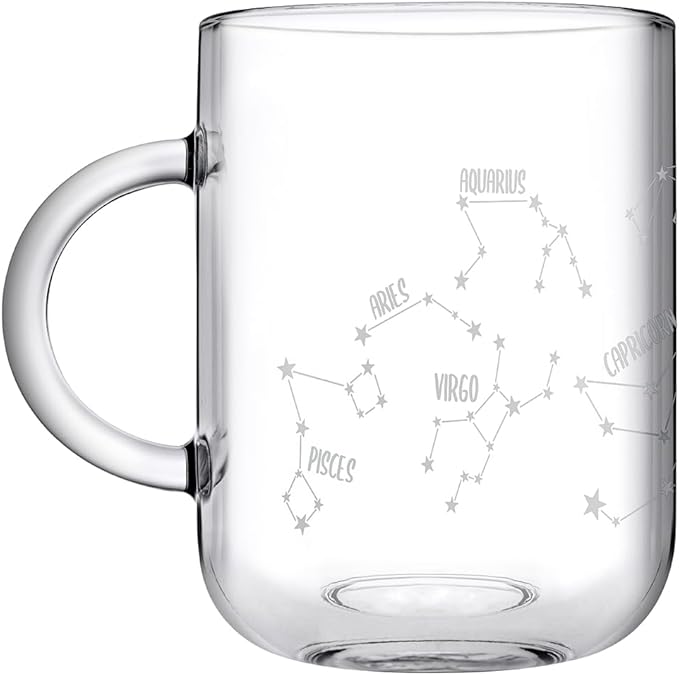 The Pasabahce Zodiac Mug Set includes 2 stylish mugs featuring zodiac designs. Made from high-quality glass, they are perfect for hot or cold beverages at home, office, or as a thoughtful gift.