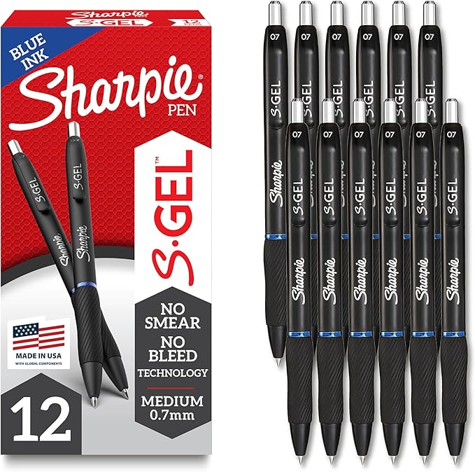 The Sharpie S-Gel Pens feature smooth 0.7mm medium-point tips and vibrant blue ink for precise, consistent writing. This 12-count set is perfect for school, office, journaling, and everyday use.